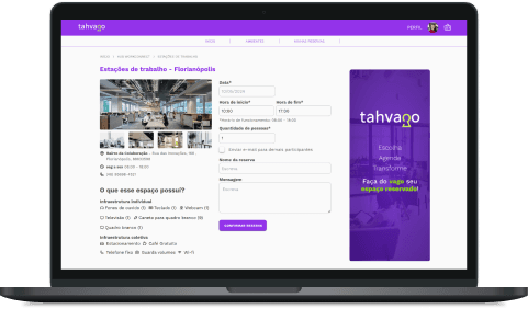 O TahVago é uma ferramenta de gestão de espaços, que simplifica o processo de reserva e melhora a eficiência na gestão de ambientes diversos, como locais de eventos, espaços de trabalho compartilhados, salas de reuniões e muito mais.